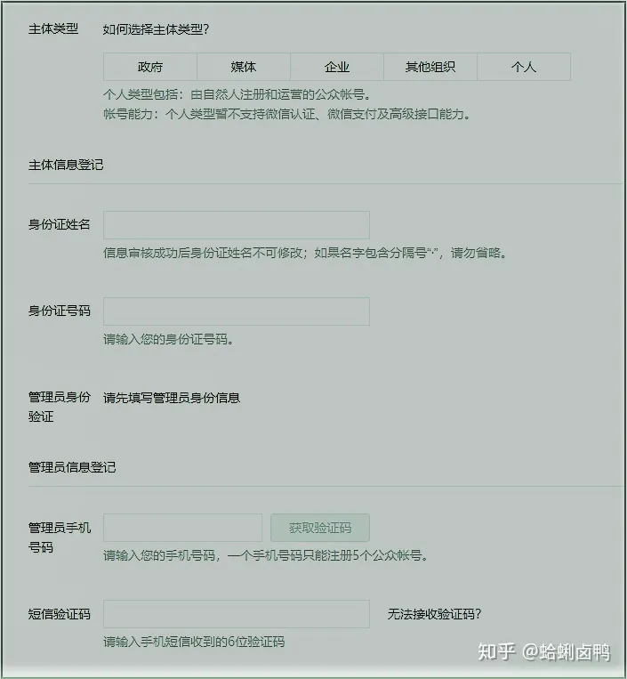 3、同一身份证注册个人类型公众号数量上限为1个;