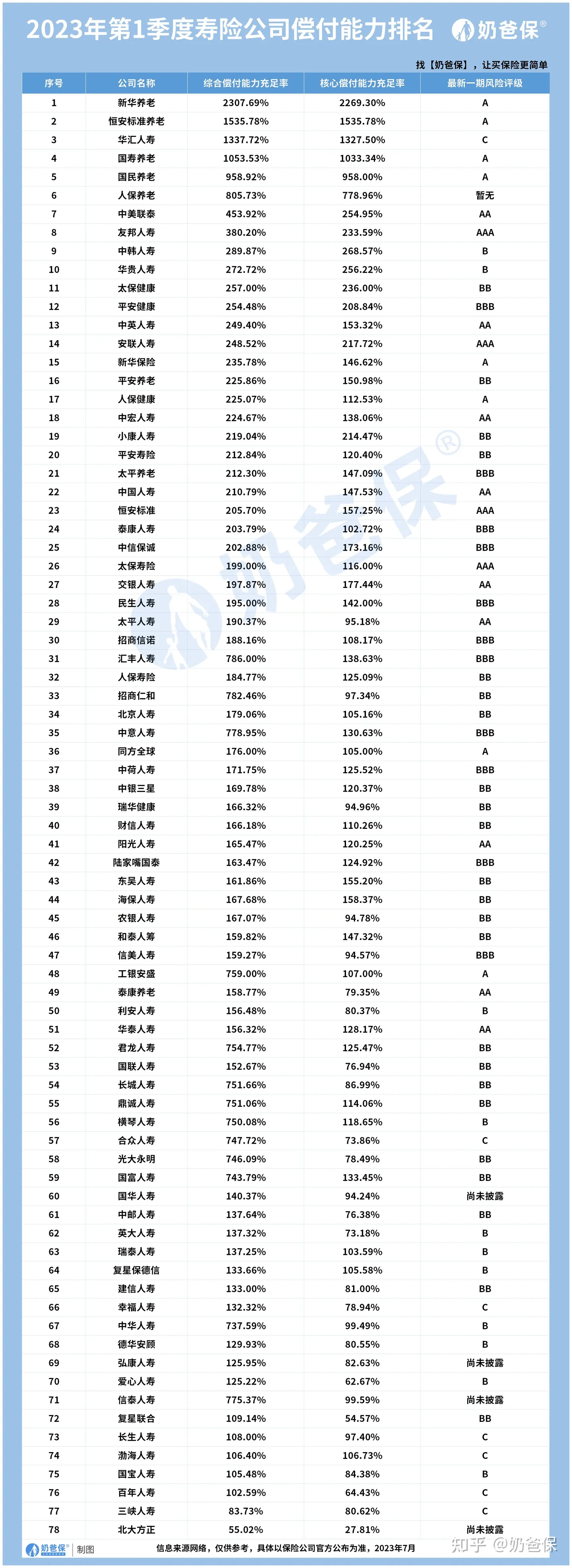 还要说明的一点是,偿付能力和服务评级也是动态变化的。每个季度都会更新,如果特别关注某家公司,可以每隔一段时间查询一下。