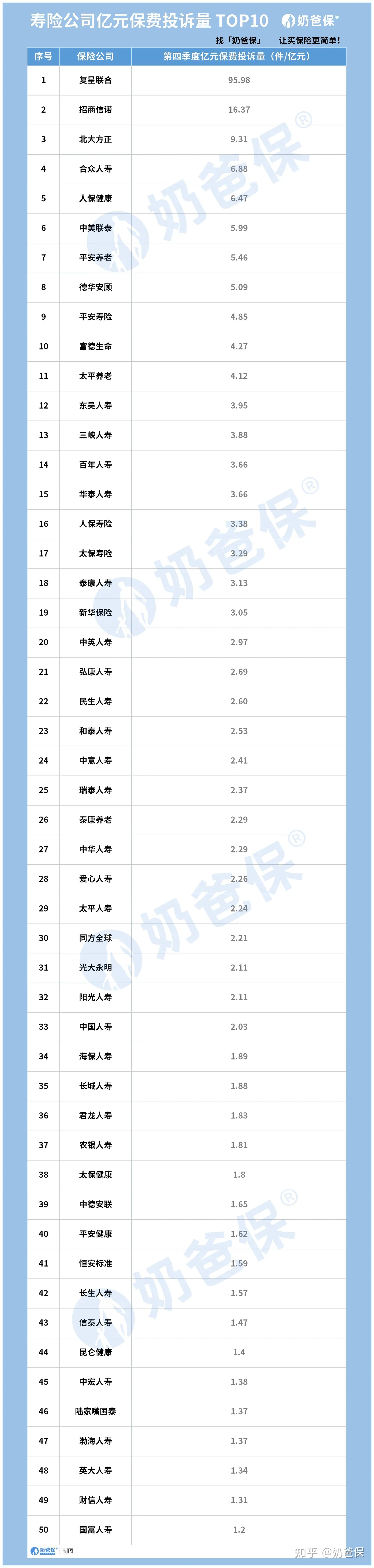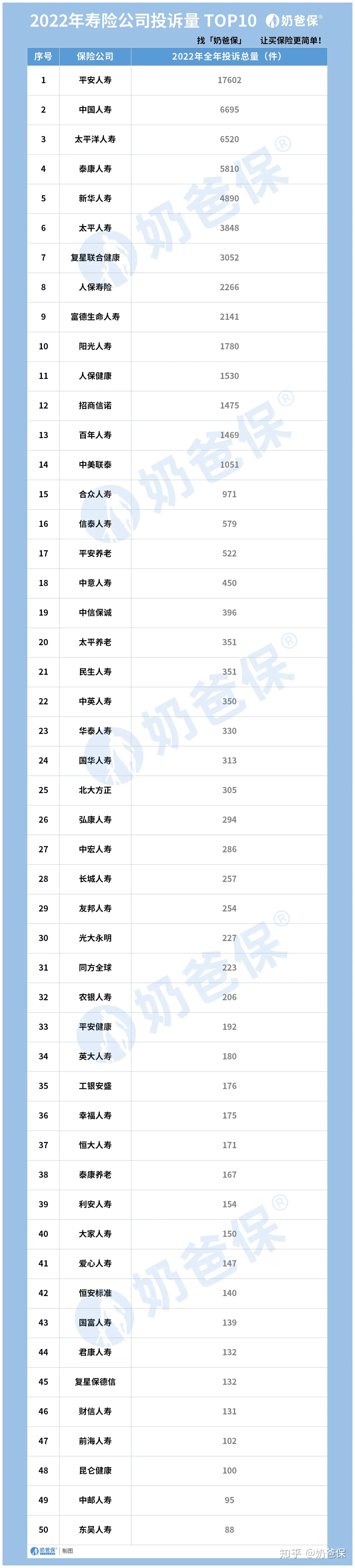 当然,公司业务量越大,需要面对的投诉量也会相对较多。比如平安人寿、中国人寿等老品牌公司,占领着保险市场的大部分额,榜上有名也不足为奇。