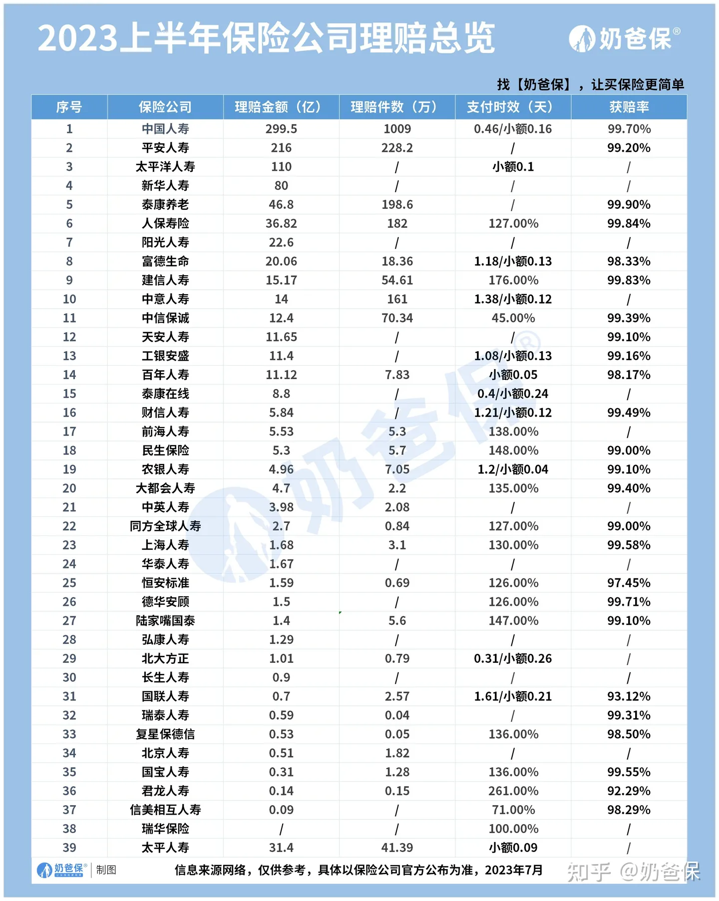 奶爸特意整理搜集了60家保险公司2022年年度理赔报告链接,具体可以点击链接跳转了解: