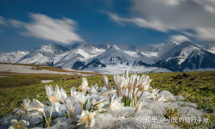4月-6月是那拉提草原最好的赏花季,从4月初顶冰绽放的野百合到6月下旬的阿山金莲、鼠尾草,各类山花争奇斗艳,这个时段的空中草原又被称为是空中花园