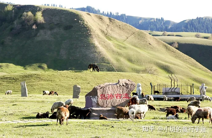 ✔天牧台:顾名思义是天堂的牧场。这是个天然牧场,水草茂密的草地上绽放着各种各样的野花,春天牧民赶着成群的牛、羊、马转场来到这里,毡房点点、炊烟袅袅,使草地充满了浓郁的游牧生活气息,将“天苍苍野茫茫,风吹草地见牛羊”的草原景象鲜活地展现在人们面前。