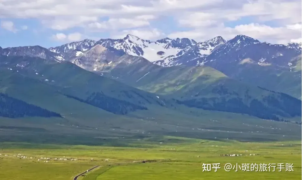 7月-9月的草原一片碧绿,羊群如云朵般移动,气候十分宜人,是避暑纳凉的好去处