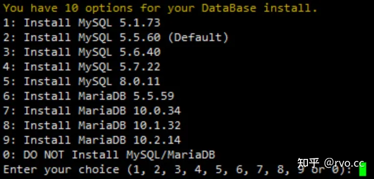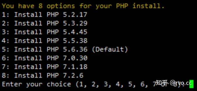 如果确定确实不需要该引擎可以输入 n,(MySQL 5.7+版本无法关闭InnoDB),输入完成,回车进入下一步:选择 PHP 版本,建议安装 PHP 7+的版本