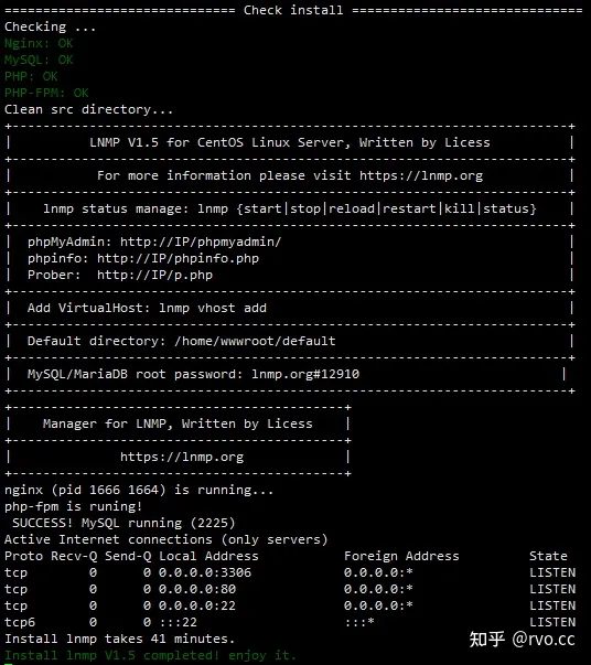 选好数据库,会让你设置数据库 root 用户的密码,此时如果你直接回车,会默认设置为 lnmp.org#随机数字,