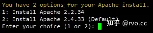 “Please enter Administrator Email Address:”,需要设置管理员邮箱,该邮箱会在报错时显示在错误页面上。再选择Apache版本: