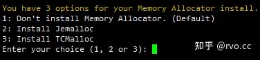 可以选择不安装、Jemalloc或TCmalloc,输入对应序号回车,直接回车为默认为不安装。
