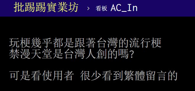 早期的禁漫试图依靠内容制胜,在其油管频道里,往日的文章成了绝佳的视频素材。遗憾的是,禁漫创作之路并不顺利,因为就连台湾同胞也知道,这个在台湾创立的网站,里面几乎全是简体中文用户,禁漫的主战场,或许应该在大陆的主流视频平台。